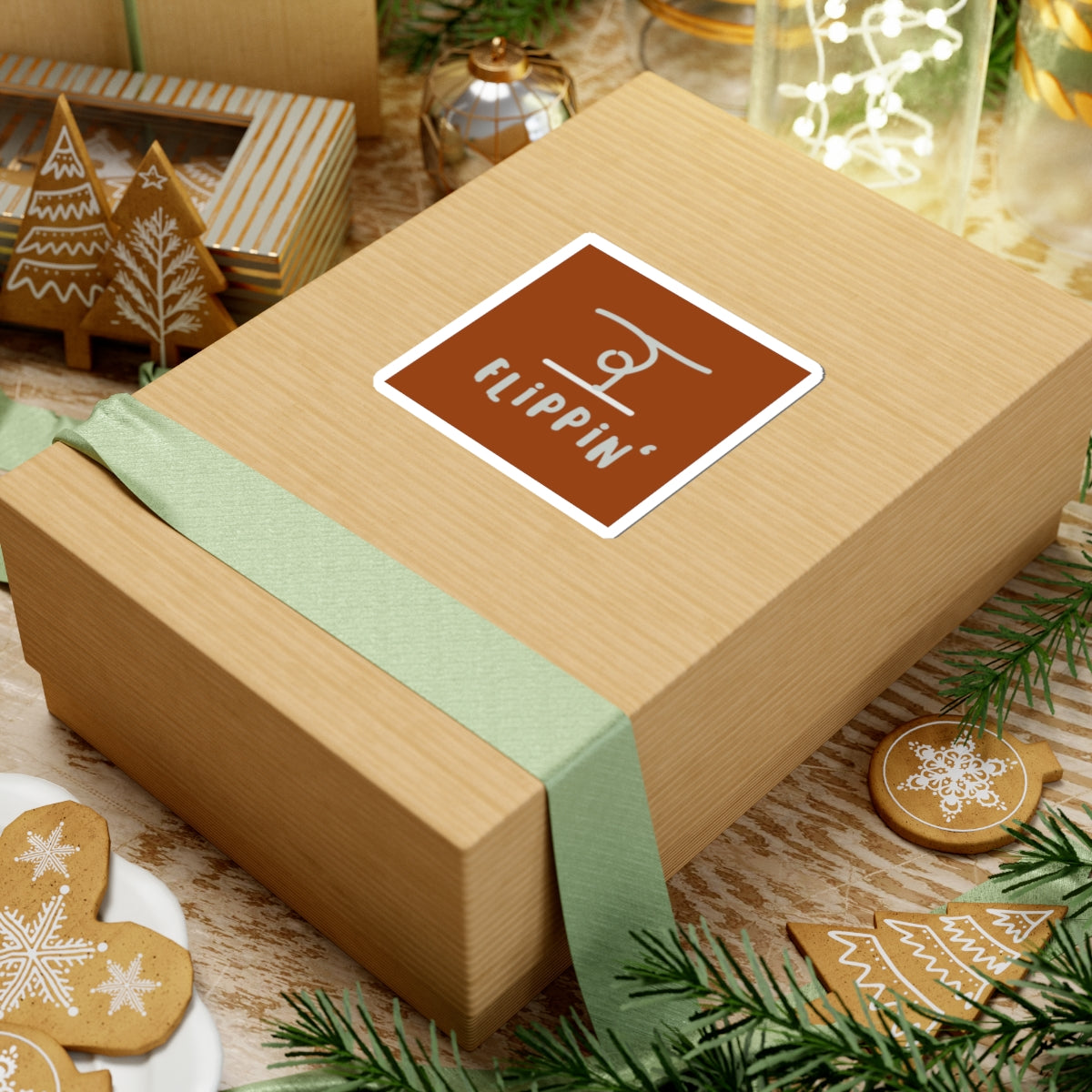 A glossy kiss-cut vinyl sticker featuring a warm, terracotta background and playful hand-drawn lettering that reads “FLIPPIN’ ” beneath a simple, abstract symbol. The design feels casual and expressive — like a little badge of personality for your laptop, journal, water bottle, or window. Colors are bright and saturated thanks to eco-solvent inks, and the glossy finish gives the artwork a polished pop while resisting scratches. Easy to apply without bubbles, available in white or transparent backing and multiple sizes so it layers well with other stickers or stands alone as a subtle statement.